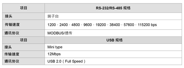 串行通訊規(guī)格: